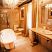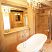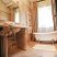 The bathroom seems taken directly from a novel of ancient Rome with a stand-alone bathtub where you can sink into bubbles intimacy.